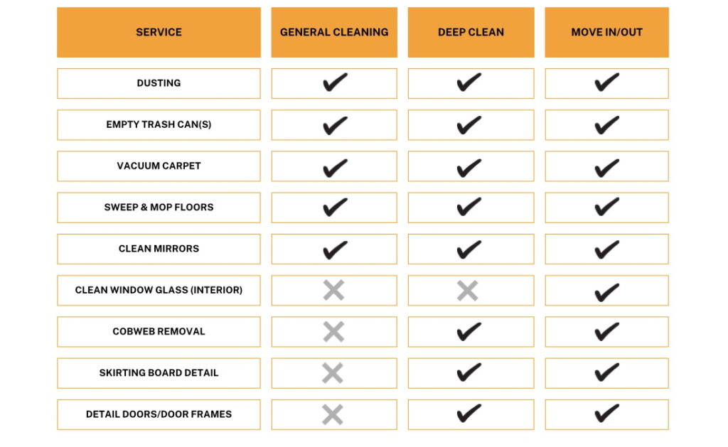 Your Cleaning Service Includes